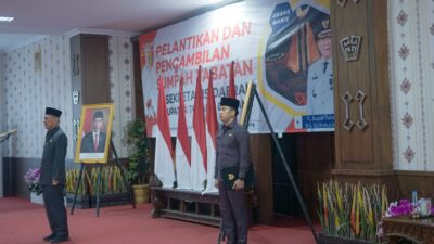 Ungkapfaktanews.com, Tulang Bawang- Penjabat Bupati Tulang Bawang Drs. Qudratul Ikhwan M.M Melaksanakan Pelantikan dan Pengambilan Sumpah Penjabat Sekretaris Daerah Kabupaten Tulang Bawang, Di Ruang Rapat Utama Lantai II Sekdakab Tulang Bawang, Rabu (15/11/2023).