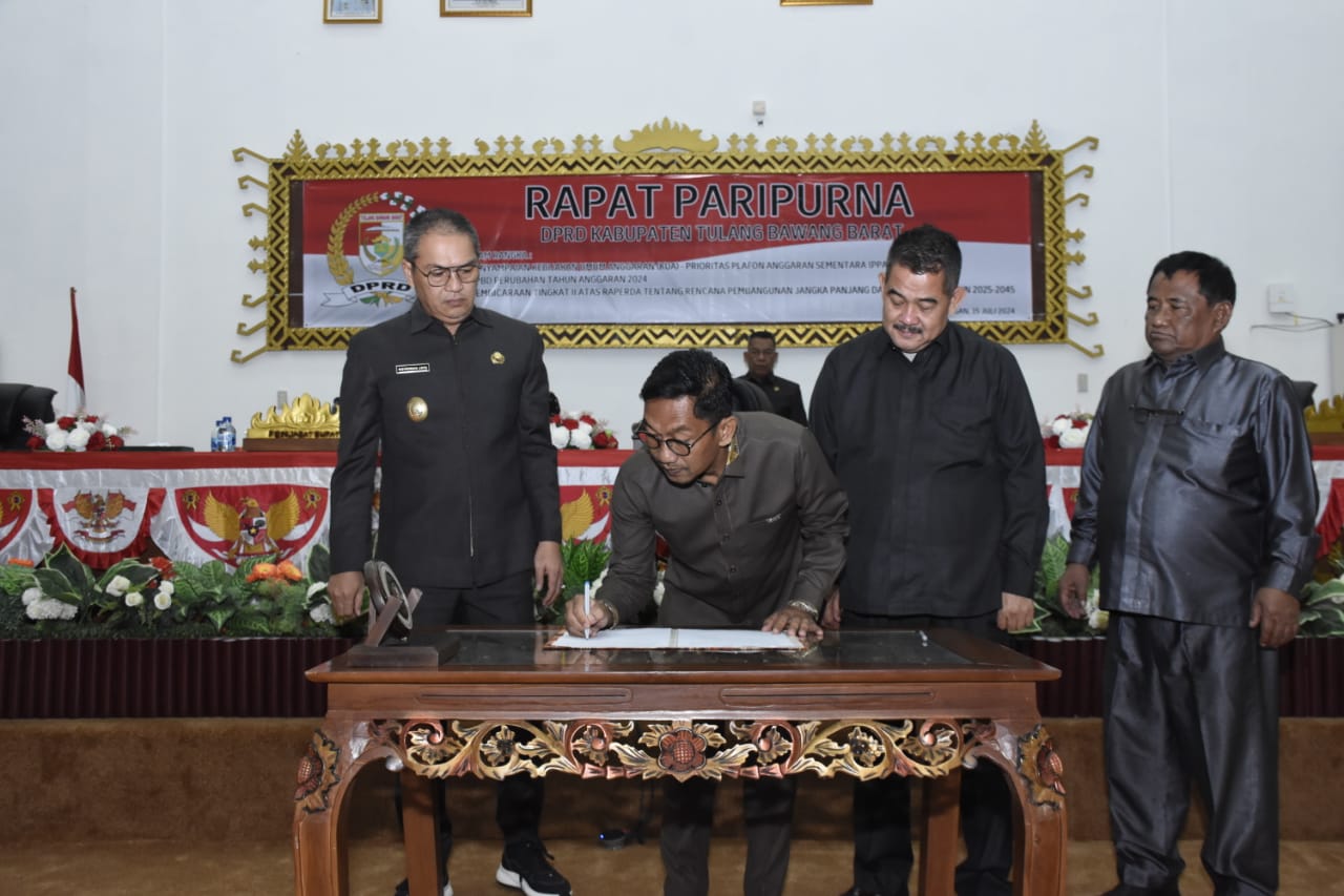 Ungkapfaktanews.com,Tubaba- Sekretaris Daerah (Sekda) Kabupaten Tulang Bawang Barat (Tubaba) Ir. Novriwan Jaya, S.P., Menghadiri Rapat Paripurna Penyampaian KUA-PPAS APBD-P Tahun Anggaran 2024 dan Pembicaraan Tingkat II atas Raperda RPJPD Tahun 2025-2045. Di Ruang Paripurna DPRD setempat, Senin (15/07/2024)
