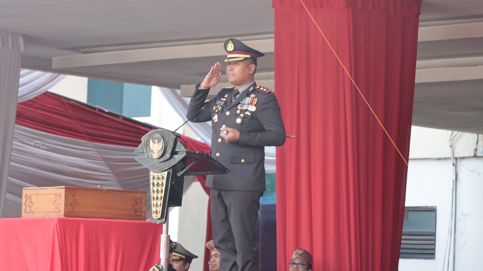 “Upacara penaikan dan penurunan bendera merah putih pada setiap tanggal 17 Agustus, merupakan bentuk kebanggaan dan apresiasi atas perjuangan para pahlawan yang telah bersusah payah serta berdarah-darah untuk meraih Kemerdekaan RI,” ucap perwira peraih Adhi Makayasa Akpol 2004.