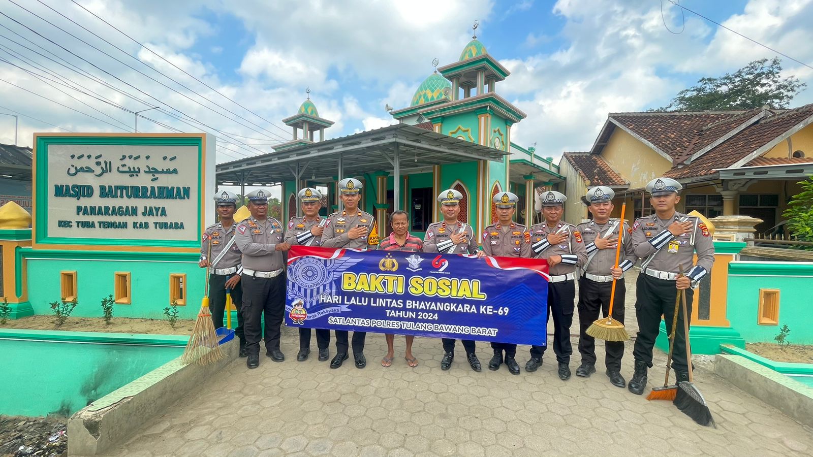Dalam kesempatan tersebut, Kasat Lantas Polres Tubaba bersama personel satlantas Tubaba turut membersihkan bangunan masjid dan halaman di seputaran Masjid.