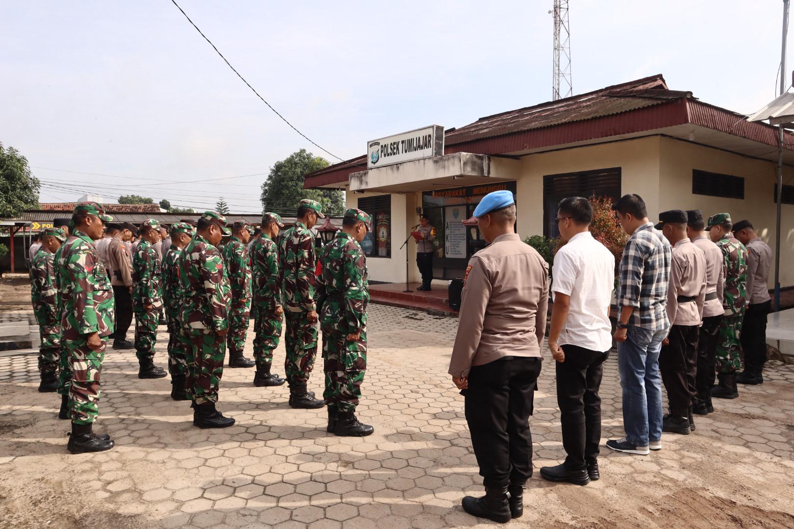 Ungkapfaktanews.com, Tulang Bawang Barat- Personel Polsek Tumijajar dan Koramil 0412/05 Tumijajar membaur menjadi satu dalam Apel Sinergitas di halaman Mapolsek Tumijajar, Rabu (19/03/2025).