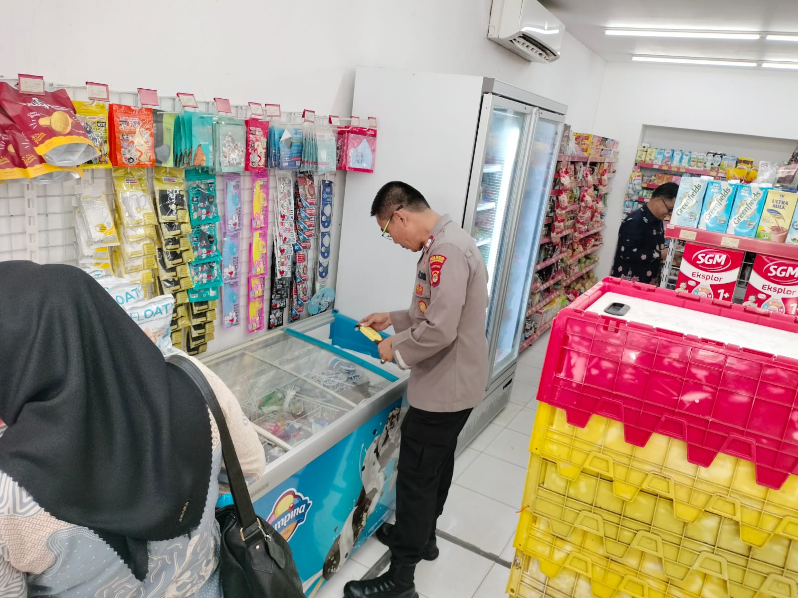“Sidak yang petugas kami lakukan ini adalah mengecek langsung kemasan dan tanggal kadaluarsa baik itu makanan maupun minuman. Apabila ditemukan ada yang rusak atau kadaluarsa, makanan tersebut harus diganti dan tidak boleh dijual lagi,” papar perwira dengan balok kuning tiga dipundaknya.
