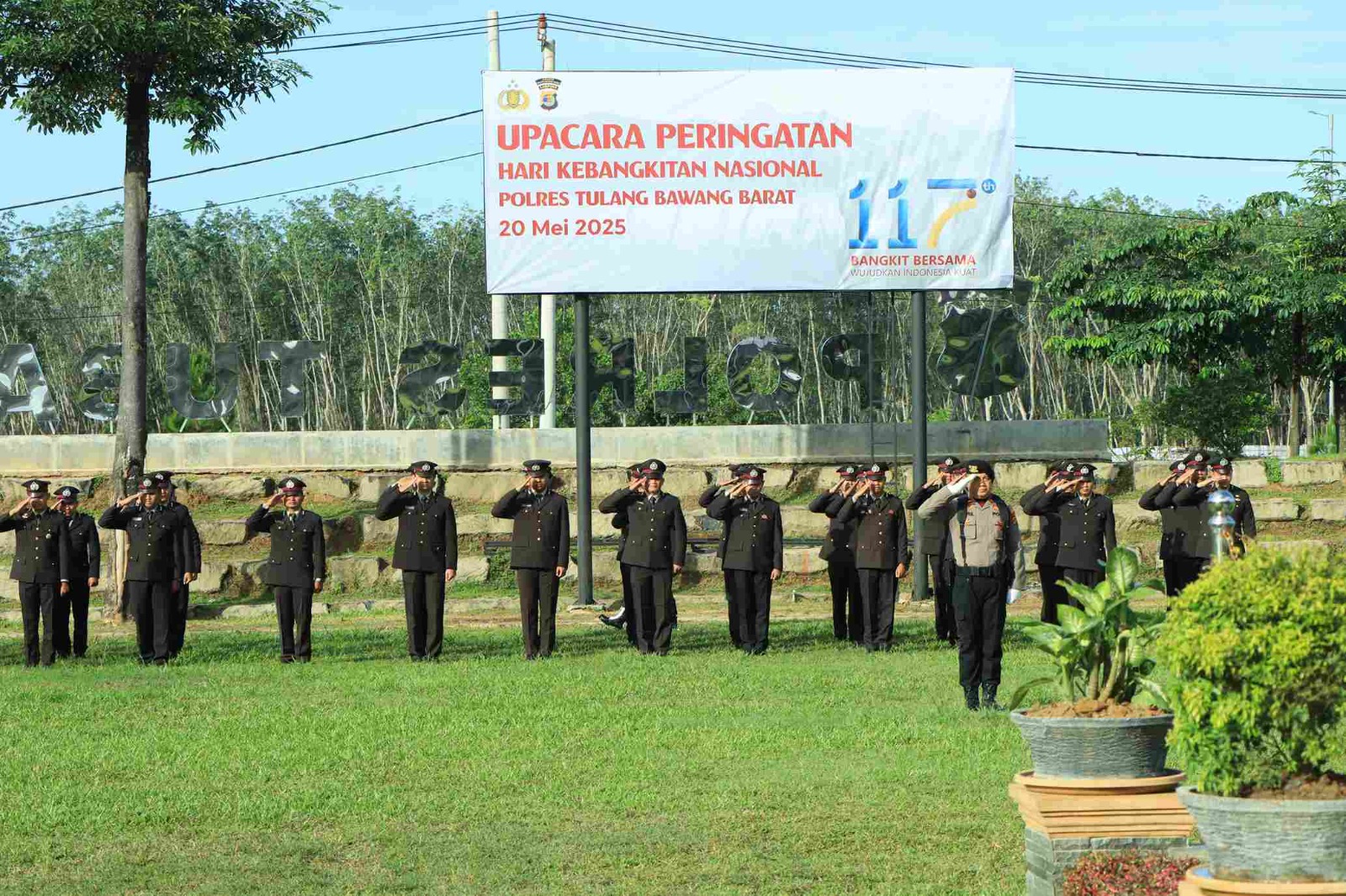 Upacara Harkitnas di pimpin oleh Kapolres Tulang Bawang Barat AKBP Sendi Antoni, S.I.K., M.I.K dan dihadiri para Pejabat Utama Polres Tulang Bawang Barat, ,Perwira serta Personil Polres Tubaba dan Polsek Jajaran.