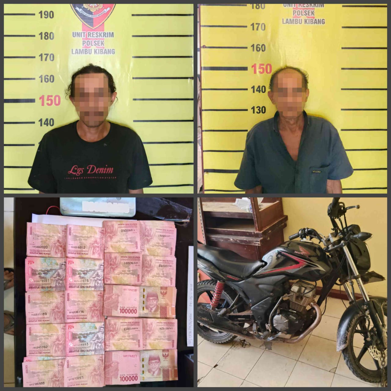 Pelaku berinisial TS (62) dan PI (38) keduanya warga Indraloka Jaya Kec. Way Kenanga Kab.Tubaba ditangkap oleh Tim Tekab 308 Presisi Sat Reskrim Polsek Lambu Kibang dan Tekab 308 Presisi Polres Tubaba pada Hari Selasa Tanggal 03 Juni 2025, Kapolres Tulang Bawang Barat AKBP Sendi Antoni, S.I.K., M.I.K, Melalui Kapolsek Lambu Kibang Iptu Kasiyono, S.E., M.H. membenarkan penangkapan TR dan PI yang dilakukan tim Tekab 308 setelah mendapat informasi akurat terkait keberadaan pelaku. Kamis (05/06/2025)