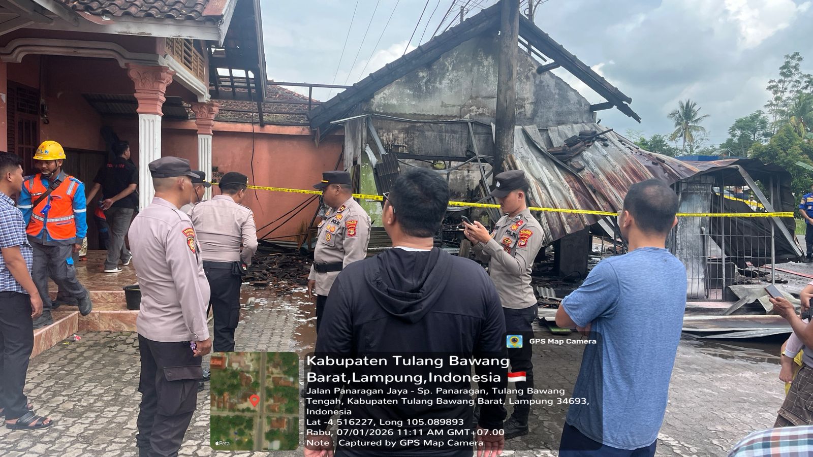 Ungkapfaktanews.com, Tulang Bawang Barat- Respons cepat ditunjukkan oleh personel Pamapta Polres Tubaba,Polda Lampung  bersama KA SPKT III Polsek Tulang Bawang Tengah saat menerima laporan adanya kebakaran di Warung Sembako milik Sukri bertempat di Kelurahan Panaragan Jaya RK/RT 005/003 Kecamatan Tulang Bawang Tengah Kabupaten Tulang Bawang Barat. Rabu (07/01/2026).