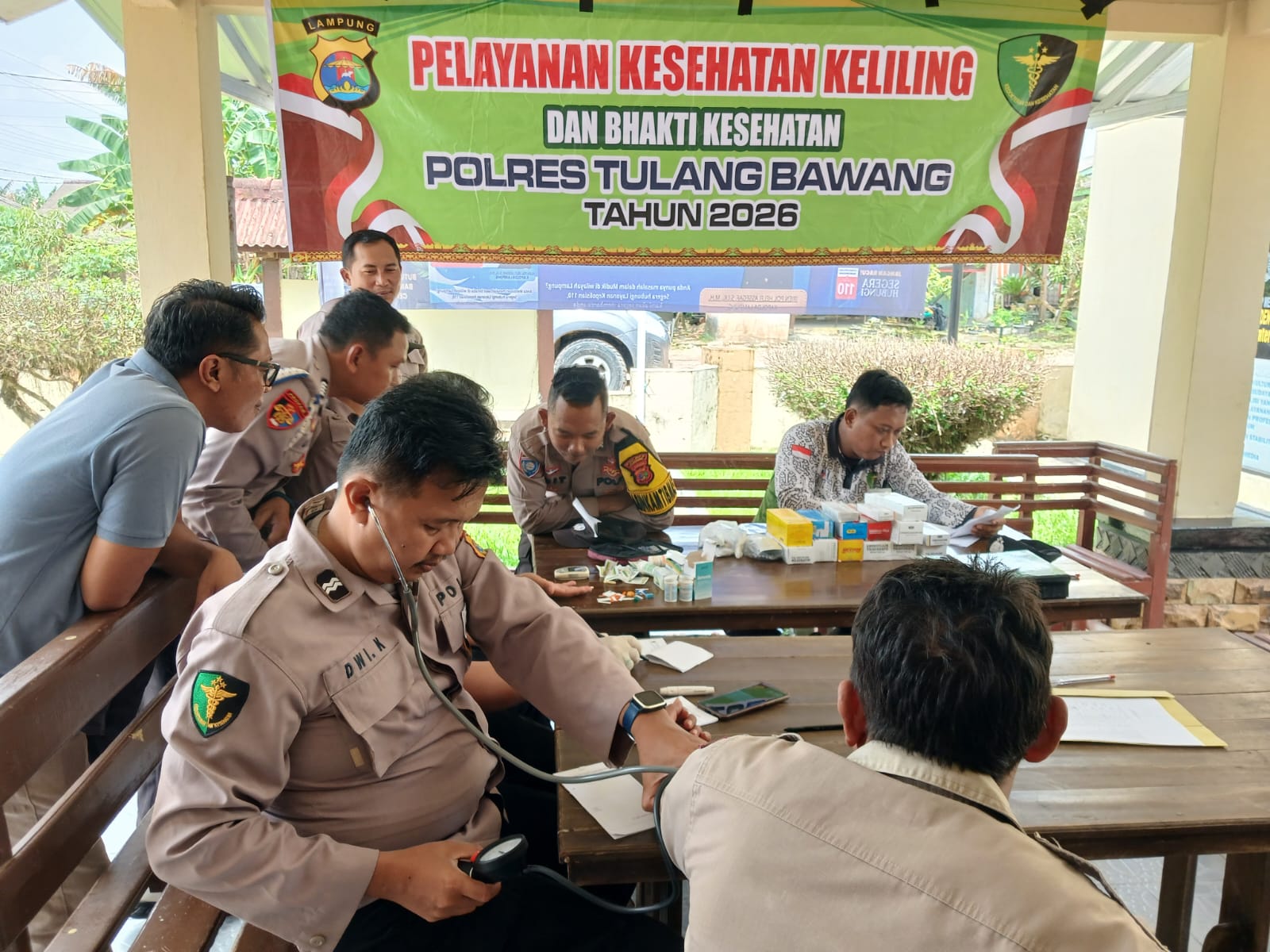 Tim Sidokkes Polres Tulang Bawang yang dipimpin langsung oleh PS. Kasidokkes Polres Tulang Bawang, Aiptu Ns. Dwi Kurniawan, S.Kep., M.H., hadir lengkap dengan tenaga medis profesional. Bersama beliau, turut serta dr. Adhi Ageng Wibowo, Briptu Vicky Prayoga, S.Kep., dan Hendro Sumanto, Amd. Kep. Dengan semangat pengabdian yang tak kenal lelah, tim ini siap memberikan pelayanan kesehatan terbaik bagi seluruh personil Polsek Dente Teladas.