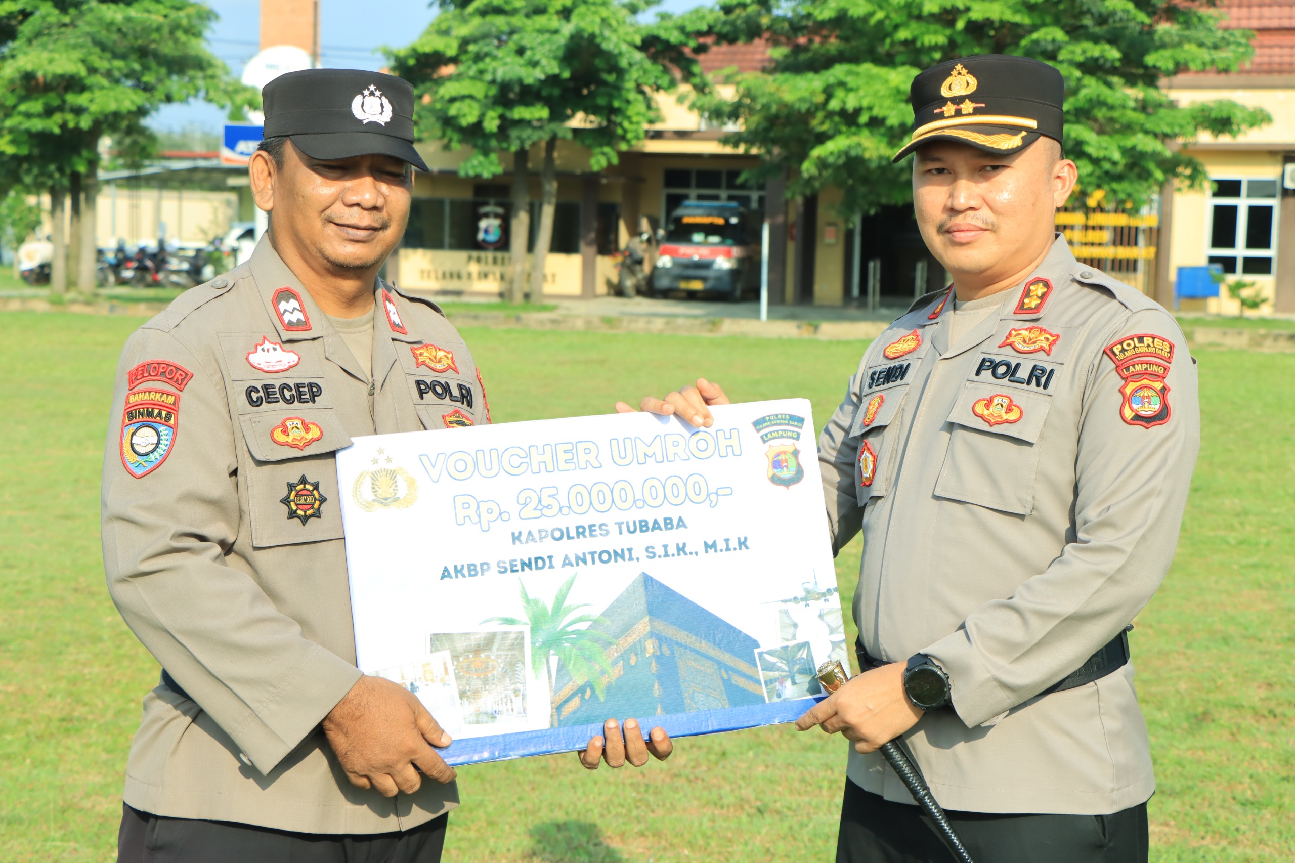 Kapolres Tubaba AKBP Sendi Antoni, S.I.K., M.I.K., dalam amanatnya menyampaikan bahwa kenaikan pangkat pengabdian merupakan bentuk apresiasi institusi kepada anggota yang telah menunjukkan dedikasi tanpa cela hingga menjelang akhir masa dinasnya dan pemberian Penghargaan diberikan kepadanya Personel sebagai bentuk apresiasi pimpinan atas dedikasi, loyalitas, serta kinerja optimal anggota dalam Bidang Olahraga dan pengungkapan kasus.